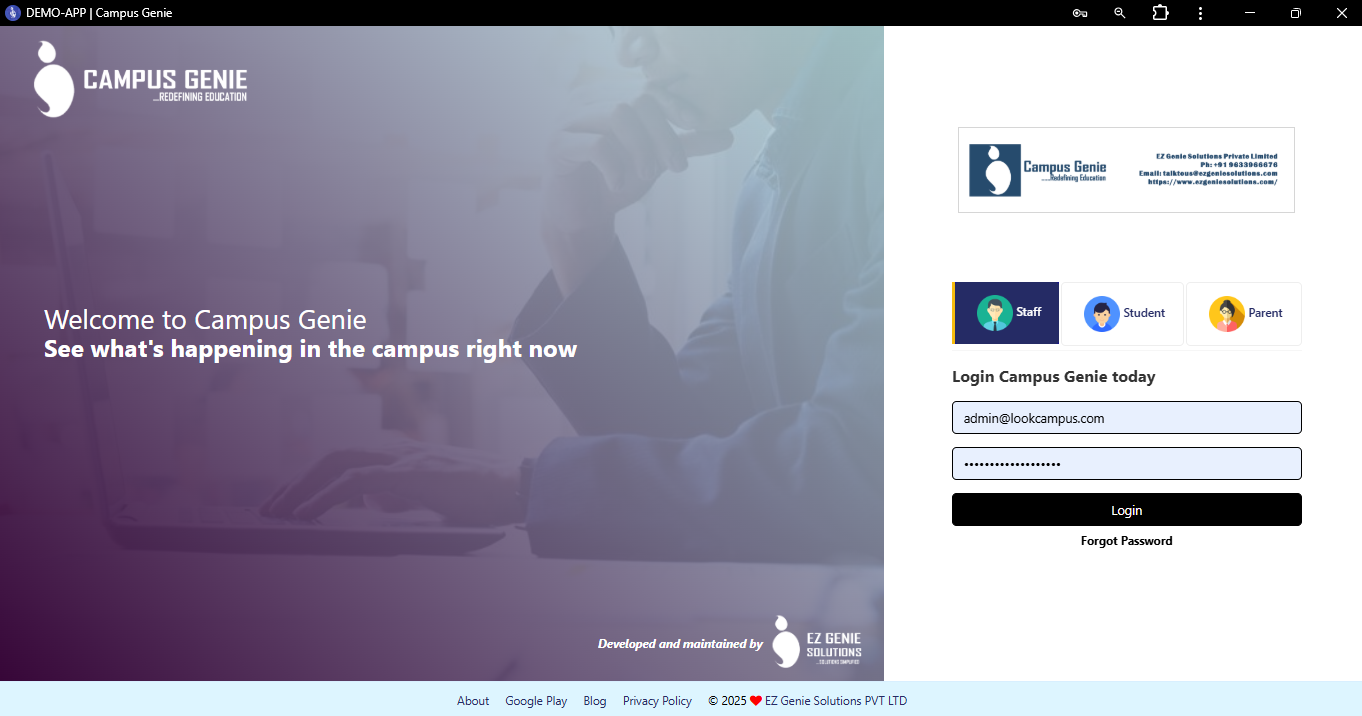 Open the link https://demo-college.campusgenie.co.in in